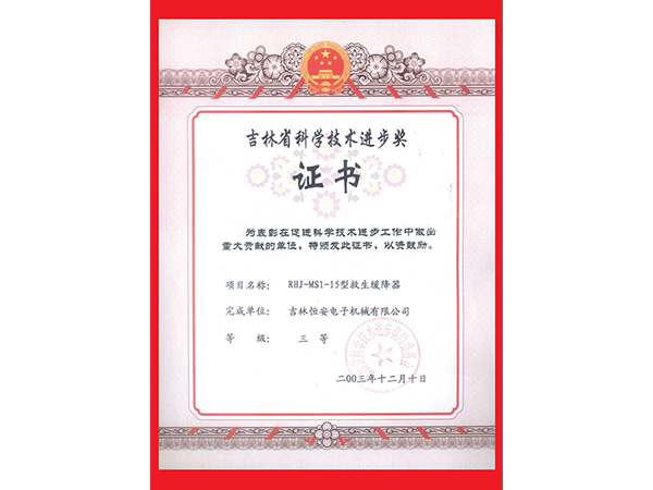 吉林省科學(xué)技術(shù)進(jìn)步獎(jiǎng)證書